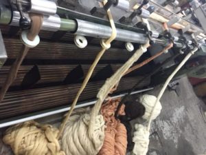 This is where ecru colored spun yarns are dipped into a dye bath to create a colored yarn that is then woven into the fabric.