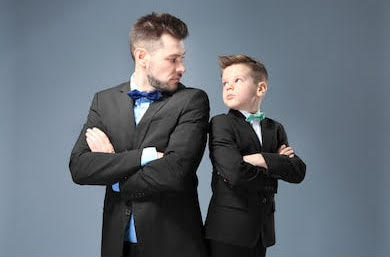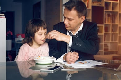 Even when working from home, a man in a suit will reassure the kids and the whole family that he is doing his best.