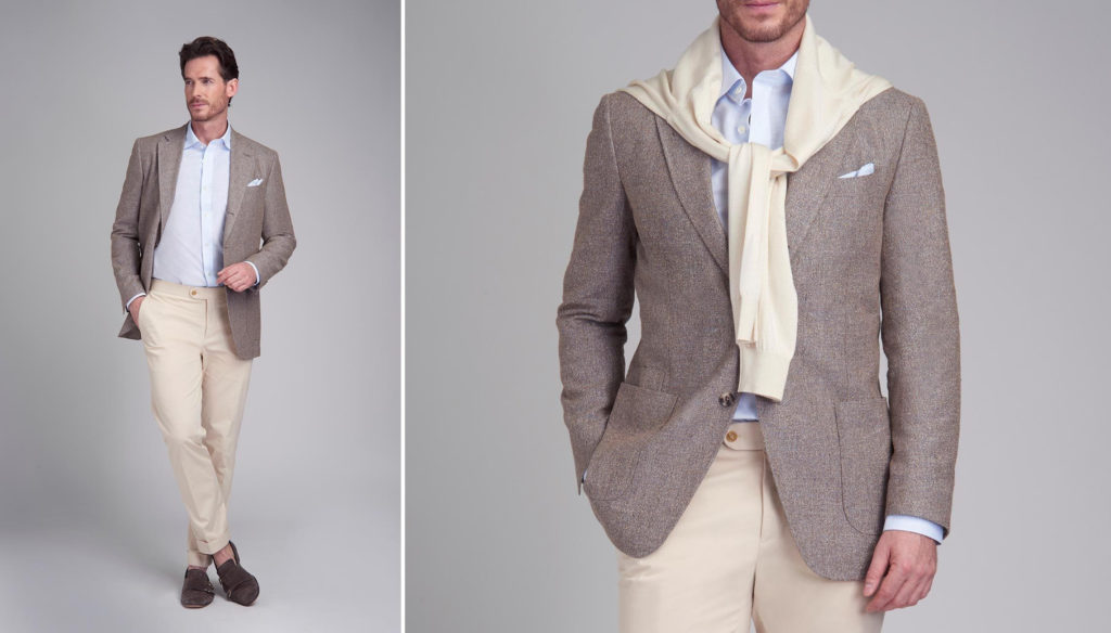 Enjoy the summer wearing a de-constructed style tailored in exclusive luxury cloth by the House of Dormeuil.